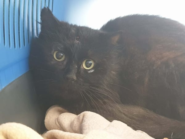 Il fuyait le contact, la cage trappe mais attendait sa pâtée tous les jours en râlant si on arrivait tard. Après des semaines de galère, une bagarre qui a mal tourné, monsieur a décidé de se laisser attraper et soigner. Il est enfin au chaud. Il aura besoin de temps pour faire confiance, mais il a déjà fait énormément de progrès. S vous avez déjà un chat, il sera ravi car il les adore !