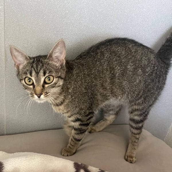 Cette jolie chatonne est très curieuse et pleine de vie. Elle adore jouer, explorer et s’intéresser à tout ce qui l’entoure.