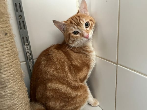 Jocky est un chat sociable qui est marqué par son arrivée au refuge. Il lui faudra du temps pour s'acclimater.