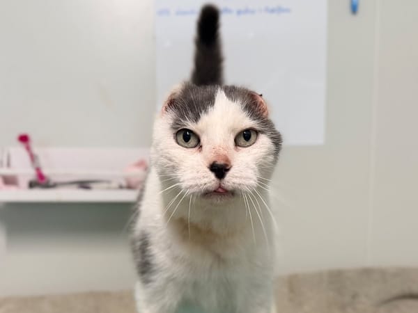 Il est arrivé au refuge dans un mauvais état de santé, avec un carcinome aux oreilles et une tumeur cancéreuse à la patte.