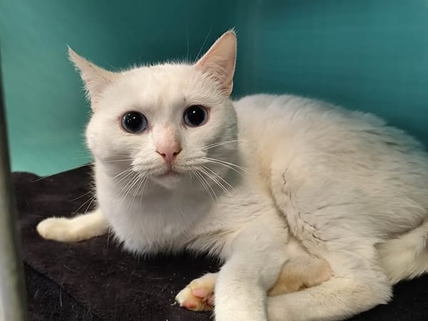 À l’adoption : Snow, magnifique chat aux yeux bleus Snow est un superbe chat blanc au regard irrésistible qui attend sa famille pour la vie