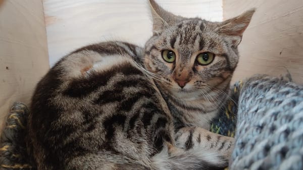Iseult est une chatte sauvage, elle ne se laisse pas approcher par les humains. Il lui faudra du temps et de la patience pour s'ouvrir à son rythme. Un autre chat sociable au foyer sera obligatoire pour adopter notre magnifique Iseult.