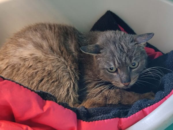 Ce petit loulou a l'habitude de vivre dehors. Il a été trappé pour lui faire des soins. Il n'a pas de contraction de la zone périnéale, il y a donc un gros risque d'incontinence. Une vie en extérieur sera plus adaptée.
