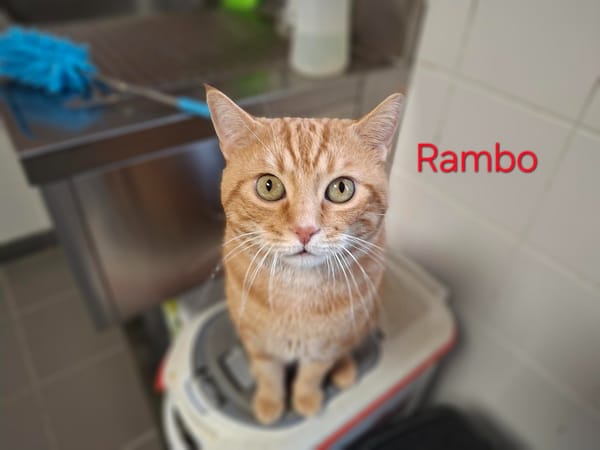 Rambo est arrivé de fourrière, et nous savons simplement qu’il vivait auparavant avec un chien. C’est un chat vif et curieux, toujours intéressé par ce qui l’entoure et très joueur. Il apprécie aussi les moments de tendresse, même s’il peut parfois se montrer un peu brusque : il a son petit caractère et peut donner un coup de patte s’il est contrarié. Il aura donc besoin d’adoptants attentifs, capables de respecter son rythme et ses limites. Propre et débrouillard, Rambo saura trouver sa place dans un environnement adapté. Il aura besoin d’un foyer avec un accès à l’extérieur. Il peut vivre avec des chats et des chiens, mais un foyer sans jeunes enfants sera préférable. Rambo recherche une famille compréhensive qui lui offrira un cadre de vie équilibré et stimulant