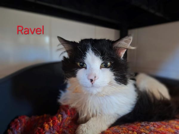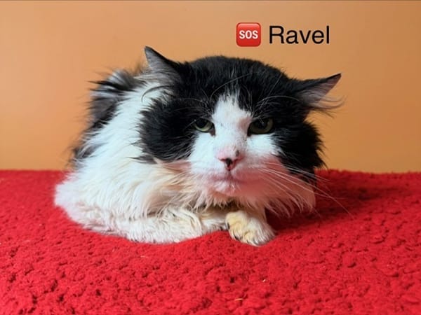 Ravel est arrivé au refuge suite à une convention de stérilisation. C’est un chat calme et timide qui aura besoin de temps, de patience et de douceur pour se sentir en confiance dans son futur foyer. Derrière sa réserve, Ravel est aussi gourmand et curieux, et il saura créer un joli lien avec ses humains une fois rassuré. Ravel est FIV+, il devra donc vivre sans accès à l’extérieur pour préserver sa santé. Il pourra vivre avec d’autres chats FIV+ ainsi qu’avec des enfants respectueux et attentifs à ses besoins. Ravel mérite une famille aimante qui lui laissera le temps de s’épanouir