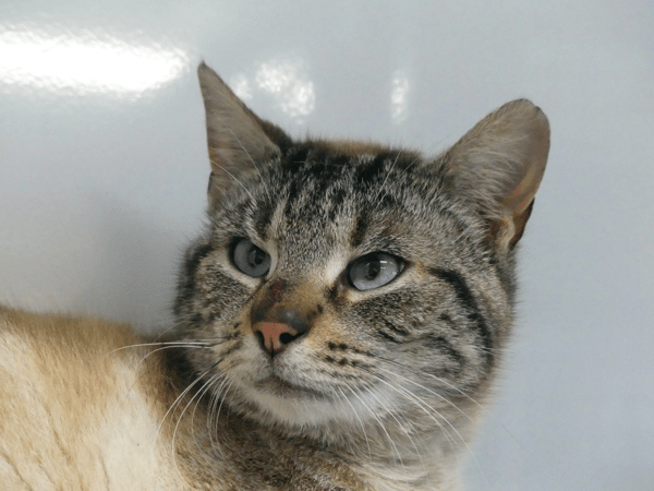 Brume a été prise en charge suite au décès de sa propriétaire. C'est une chatte très gentille qui accepte volontiers les caresses !