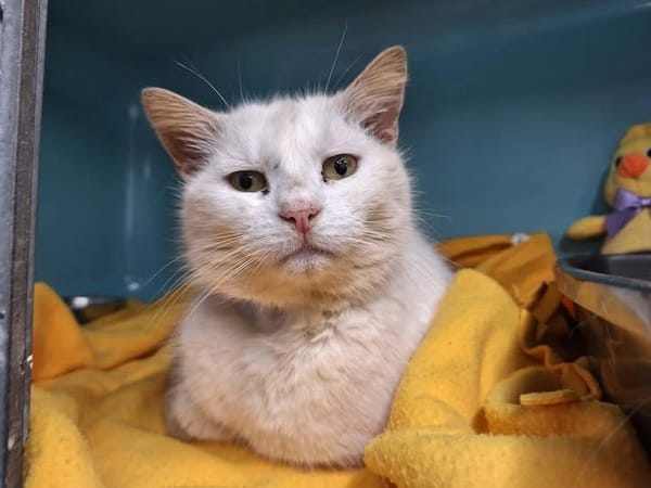 Pop corn est un chat qui a été trouvé sur la voie public. Il est arrivé en mauvais état , a du voir un vétérinaire en urgence.