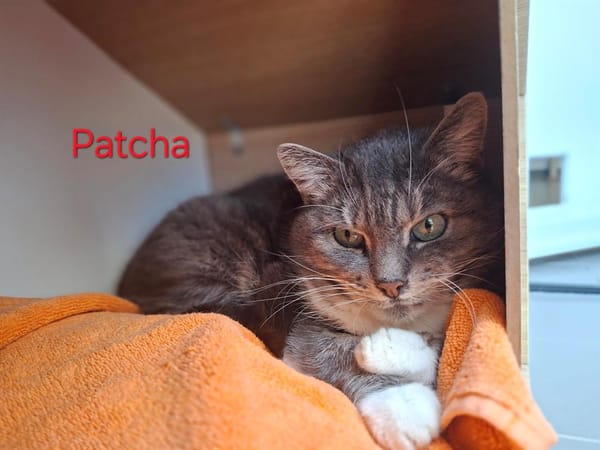 Patcha est arrivée au refuge suite à un abandon lié à un départ en EHPAD. C’est une adorable mamie un peu timide et discrète mais très affectueuse, calme et câline, qui ne demande qu’un foyer doux et rassurant pour finir sa vie entourée d’amour. Très attachante, Patcha apprécie les moments de tendresse et la tranquillité. Elle saura apporter beaucoup de douceur et de sérénité à son futur foyer. Elle pourra vivre avec d’autres chats ainsi qu’avec des enfants respectueux et attentifs à ses besoins. Patcha mérite de retrouver la chaleur d’un foyer aimant pour ses vieux jours.