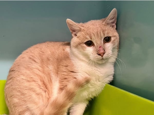 Popcorn vient tout juste d’arriver au refuge, et nous apprenons à connaître un chat très timide, mais très gentil.