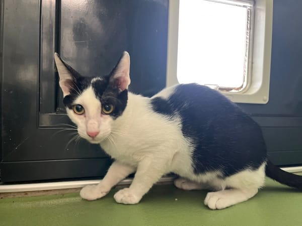 M’biti est arrivé de Mayotte, il a été trouvé alors qu’il traversait une route devant les voitures. C’est un chat très gentil, il aura besoin d’un peu de temps avant de vous accorder sa confiance.