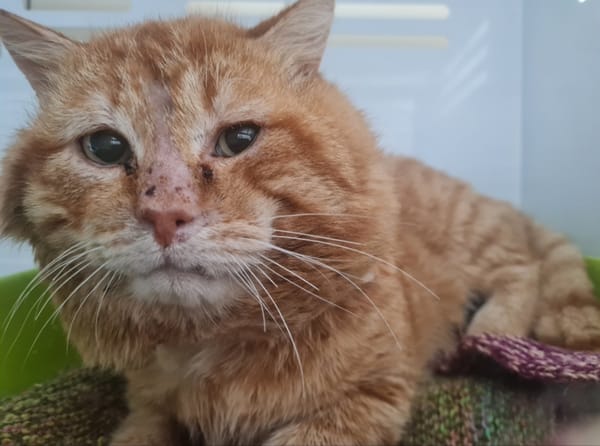 Salut moi c'est Zumo, je sui arrivé après avoir été trouvé errant dans un jardin. Non identifié et non réclamé, j'ai fait mon temps de fourrière et me voilà désormais prêt à partir pour de nouvelles aventures. Je suis calme, et timide. J'ai quelques craintes sûrement lié à mon passé, mes yeux parlent d'eux-mêmes. Je me suis blessé sur le nez lors de ma mise en cage, mes poils repousseront mais il faudra du temps. Je suis prêt à conquérir votre cœur mais il faudra se montrer doux et patient.