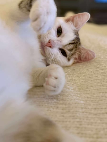 S’il est le plus craquant de toutes les petites boules de poils, une vraie petite douceur, Petit Pain est aussi un petit chaton qui a besoin d’attention et de soin. (À cause d’une allergie, il a besoin d’un traitement régulier pour éviter de se gratter). Et donc d’un humain à l’aise avec le fait de lui donner des comprimés chaque semaine.