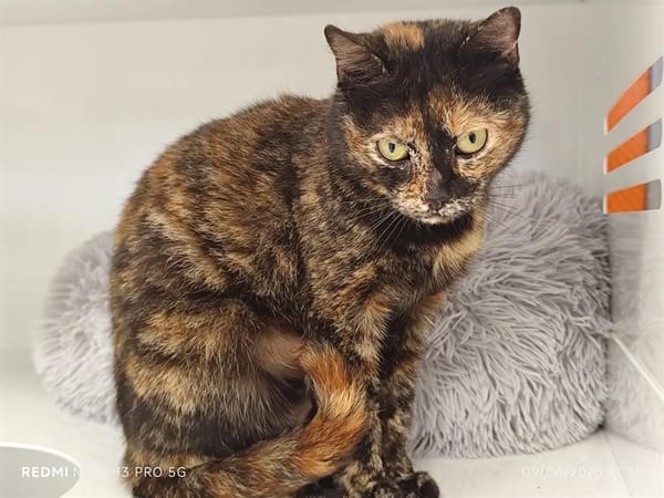 Jane a été trouvée errante non ID. Nous ne connaissons pas son histoire . Par contre elle se montre douce et câline .