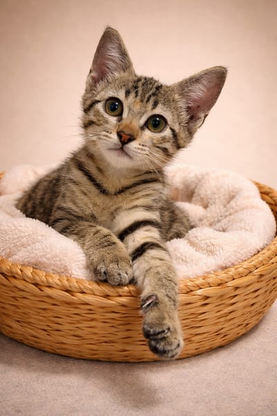 Voici ZYRA, adorable chatonne tigrée avec de légères taches rousses/beiges🧡🤎🖤, à la recherche de sa famille pour la vie… idéalement avec son frère PHOENIX, dont elle est inséparable 💞
