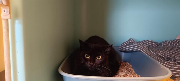 Tobie est une jeune chatte qui n'a pas dû cotoyer beaucoup d'humain. Elle aura besoin de temps et de patience avant de nous donner sa confiance.