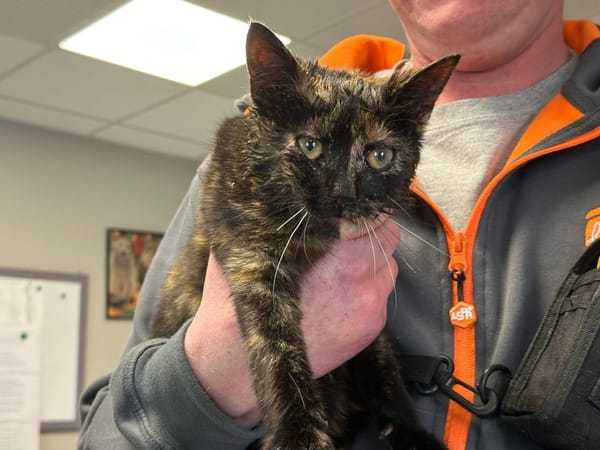 Chatte trouvée divaguante la tête coincée dans une boîte de conserve