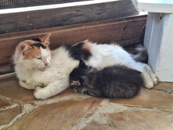 Pénélope est une jeune maman sortie de la fourrière avec ses 5 petits, qu’elle élève actuellement avec beaucoup d’attention et de dévouement.