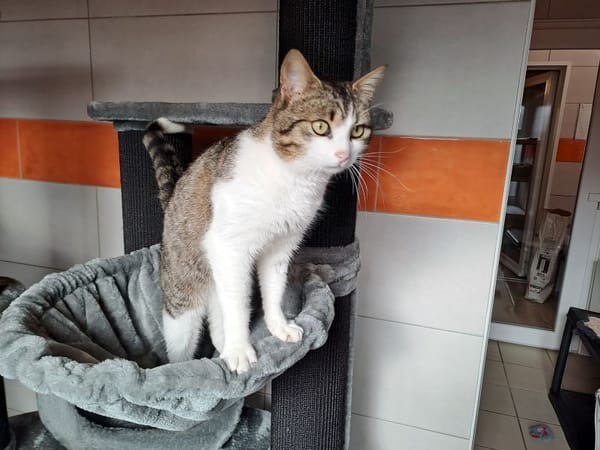 Cosmo est arrivé de fourrière. C'est un jeune chat assez actif, curieux et affectueux. Il est également sociable congénères, du moins avec des femelles. A noter qu'il s'adapte très facilement à un nouvel environnement. Un extérieur lui sera nécessaire.