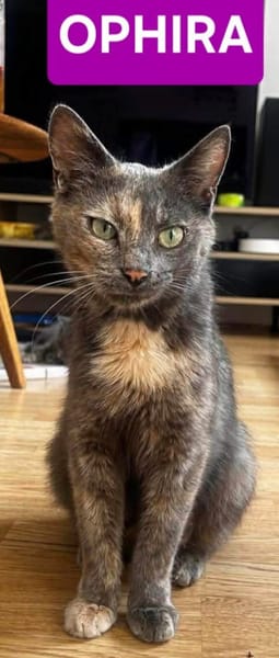 Timide à son arrivée en famille d’accueil, Ophira est venue chercher des câlins après quelques jours le temps de prendre ses marques. Très calme et affectueuse, c’est une chatte qui recherche beaucoup le contact humain une fois la confiance établie et viendra vous chercher souvent en vous indiquant d’un petit coup de tête poli qu’il faut plus de câlins!
