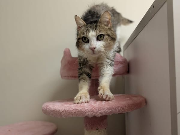 Trouvé errant et jamais réclamé, il s’est révélé être un chat calme, gentil et très affectueux, reconnaissant envers ceux qui prennent soin de lui.