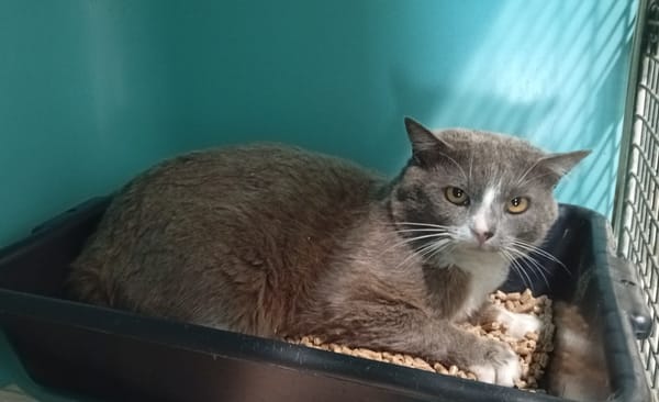Très craintif à son arrivée, il a encore du mal à faire confiance à l’humain. Il préfère observer à distance, se cacher pour se sentir en sécurité, et avance à son rythme. Mais derrière cette peur, on devine un chat sensible, doux, qui aura simplement besoin de temps, de patience et de bienveillance pour s’ouvrir.