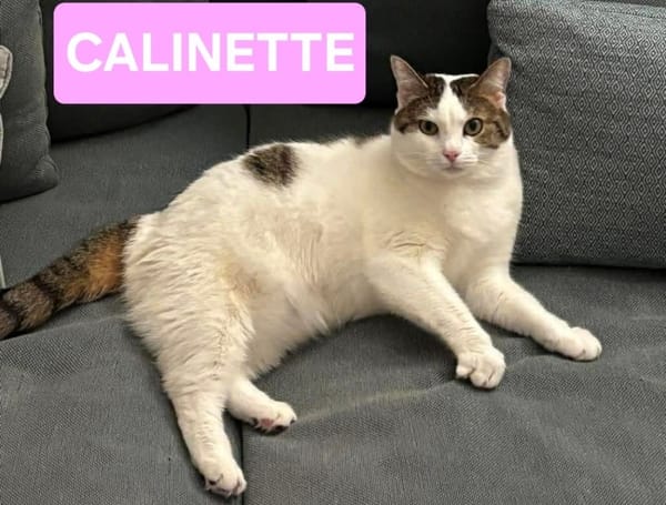 Calinette est une chatte un peu timide au départ mais des qu’elle se familiarise avec l’environnement et les personnes, elle est adorable.