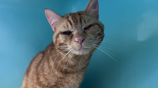 C'est un jeune chat sociable, bavard et câlin. Il est a été opéré des yeux à son arrivée au refuge.