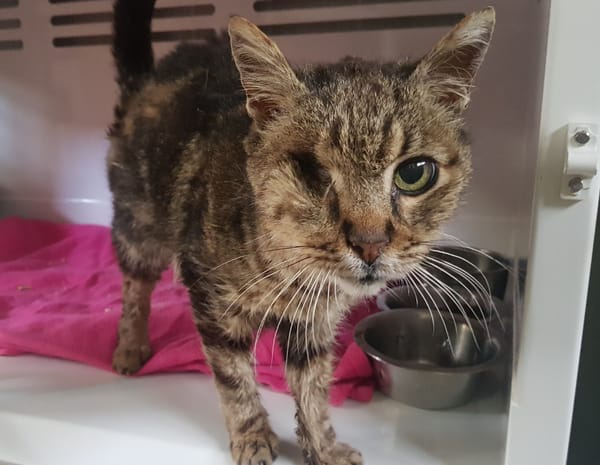 Nous ne savons rien du passé de cet adorable chat mais nul doute qu'il a du vivre des moments difficiles, son oeil droit absent en est une preuve. Pourtant, cette belle "gueule cassée" est un amour de chat en recherche de contact et de caresses. Les photos ne sont pas à son avantage et c'est justement parce qu'il ne tient pas en place et cherche toujours à se rapprocher de nos mains pour obtenir un câlin. Une fois ses poils repoussés, il aura fière allure. Ne vous arrêtez donc pas à ces photos, venez rencontrer cet amour et offrez lui la belle vie qu'il mérite!