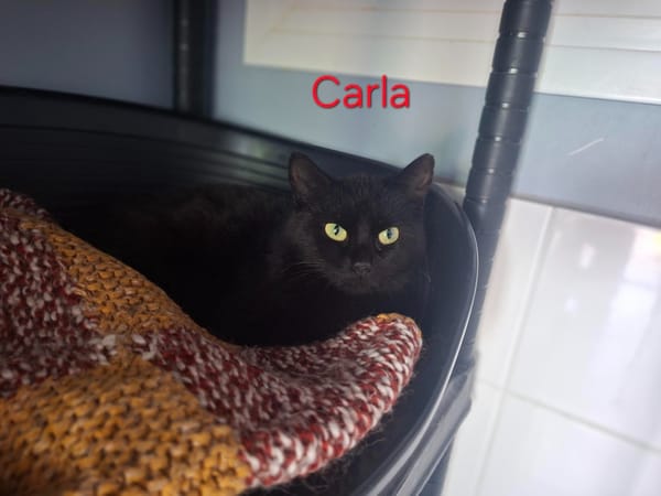 Carla est arrivé chez nous suite à un abandon. Elle reste un chat craintif mais avec du temps et de la patience et avec beaucoup d'amour, elle donnera sa confiance. Elle reste tout de même affectueuse. Il lui faudra un temps d'adaptation pour qu'elle se sente enfin chez elle après son adoption.