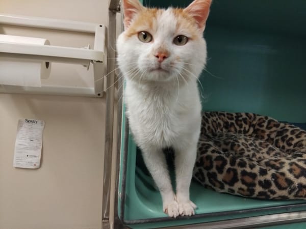 Sekani a un petit problème de cystite de stress et devra donc avoir une nourriture particulière à vie.