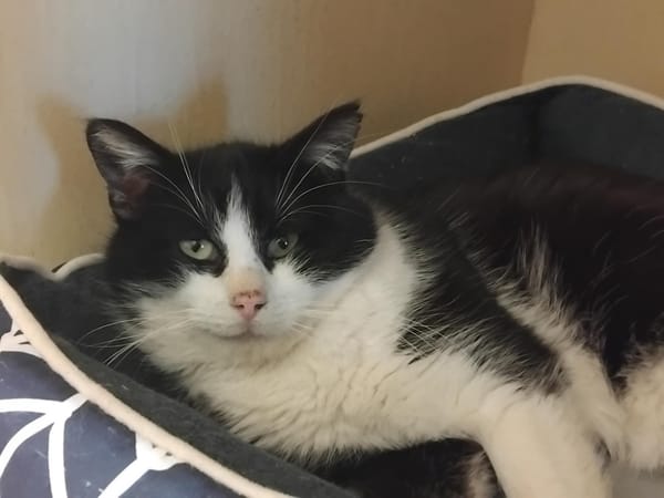 Roger est un chat plutôt timide mais qui apprécie les câlins une fois qu'il se détend.
