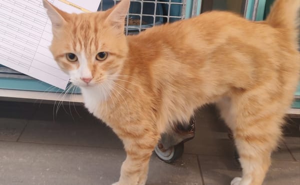 Moustache est en sos car il a une alimentation spécifique. Tout vous sera expliqué au refuge.