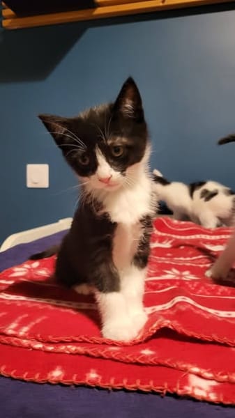 🖤 Benji est un magnifique chaton noir avec de jolies chaussettes blanches 🧦 qui le rendent irrésistible.