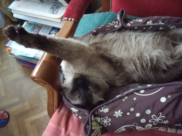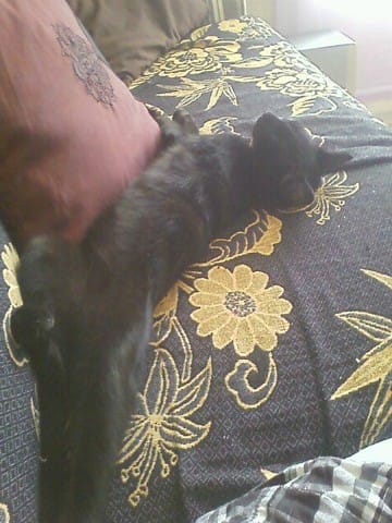 Comme Félia n'a jamais fait ça et que je ne l'ai jamais remarqué chez aucun de mes précédents chats... En même temps, jamais aucun de mes chats n'a été aussi collé à moi non plus ;)