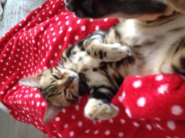 Sinon, j'ai l'impression que le chat Bengal s'adapte bien en appartement, mais il a besoin de beaucoup d'attention. Le mien, en tout cas, demande beaucoup à jouer avec moi. Il joue aussi seul, mais nécessite d'avoir un arbre à chat et des espaces en hauteur sur lesquels il pourra grimper. Par exemple, j'ai une grande armoire étagée avec des paniers en osier et il les escalade à longueur de temps ! Il faut le laisser grimper, c'est dans sa nature et ça lui permet de rester actif.