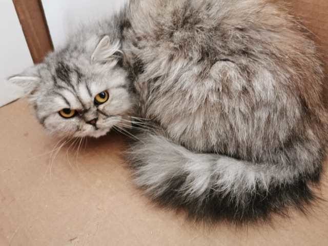 Bonjour à tous ! Je me tourne vers vous car nous avons adapté à la maison une charmante petite chatte British Longhair, à la robe Silver Tabby. Elle vient du refuge avec un début de vie un peu compliqué, est encore très craintive et a désormais environ 10-12 mois. Elle est en bonne forme et verra bientôt le véto mais je suis intrigué par un élément : elle a une robe Silver Tabby si je ne me trompe pas, mais son pelage a une large zone marron, quasi rousse, sur le bas de son dos.On la voit pas mal sur la photo où elle se cache dans le meuble de la salle de bains (1er jour à la maison) La dame du refuge nous disait que c'était lié aux croquettes (?), ce qui m'a beaucoup surpris et j'aurais aimé savoir si cela vous semble possible ? Elle est très belle ainsi et nous serons très heureux si elle ne change pas mais je suis un peu surpris quand même. Des avis ? Merci de votre aide !