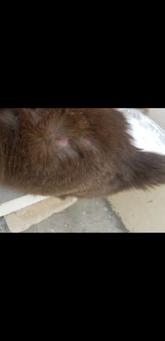 Je l'ai actuellement sous les yeux elle est encore en train de se gratter à cause des puces, et sinon je n'ai pas trouvé de trous identiques encore moins au niveau de la tête. J'espère que les photos sont plus nettes.
