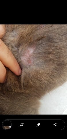 Il faudrait qu'Angélique envoie les photos à son véto si elle ne peut pas se déplacer, il y a de très grandes chances pour que ce soit la teigne, c'est très caractéristique comme lésion.