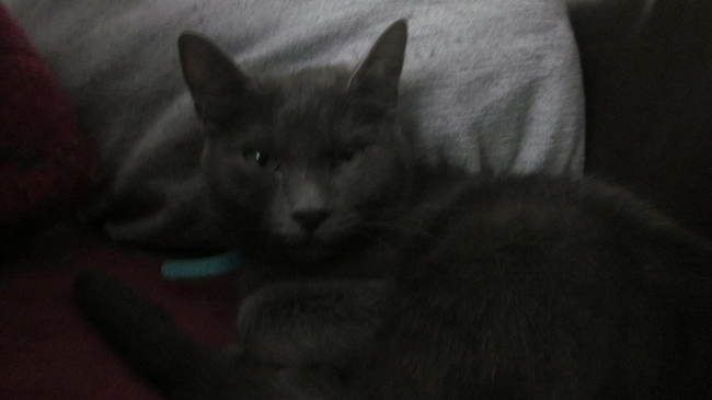 sur son carnet de santé c 'est ecrit chat europeen mais il y a aussi ecrit robe bleu je me fais plaisir en me disant que peut etre elle en est une lol j'ai fais les courses j'i acheter des knacki et du jambon on va tenter ce soir je voudrais temps qu'elle grossisse j'ai toujours adorer les chats bien portants pour ce qui est de son gabarit elle est toute en longeur les homoplates son saillants et des creux aux cuisses arrieres elle parait petite ur pattes mais elle marche toujours presque coucher car elle est encore tres craintive mais lorsque elle est assise elle fait plus grande et quad elle s 'etire n peut voir quelle a de longue pattes pour e moment ellle vit un peu recroqueviller par la peur on dirait .... le veterinaire pense qu elle est un peu chartreux mais comment savoir effectivement pas facile