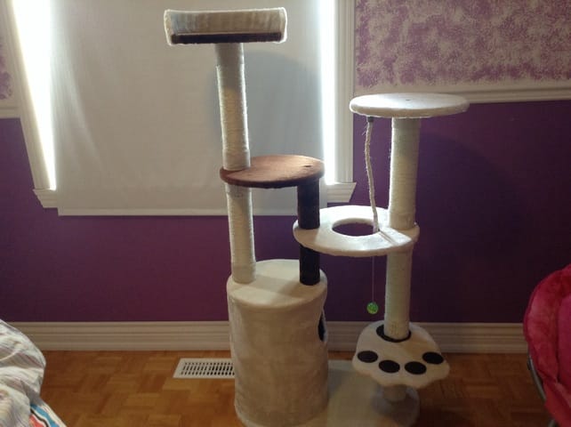 Je viens de recevoir mon second arbre à chat, le voici! Maintenant il ne manque plus que le grand brun (qui est d'ailleurs le plus important -_-')