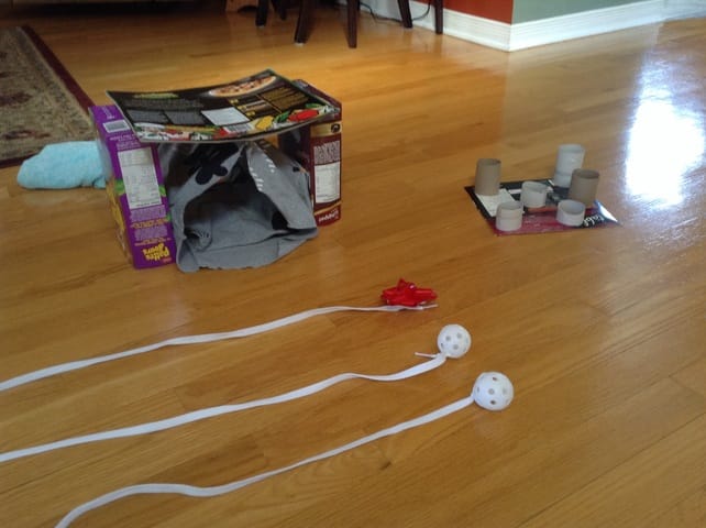 J'ai fabriqué des jouets et des cabanes pour Ollie ce matin, les voici!