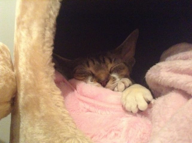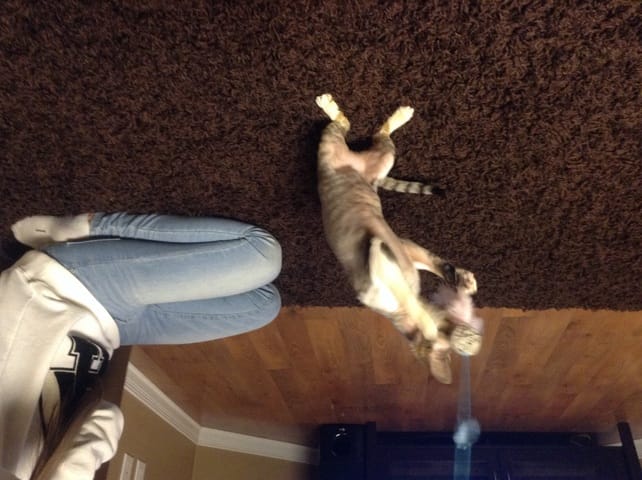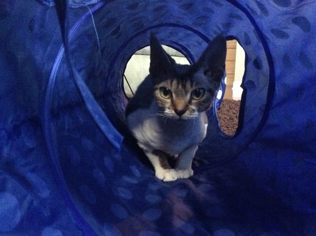 Au début, elle ne sortait presque jamais de son arbre à chat, mais depuis hier soir elle prend goût à explorer et a même fait le tour de toute la maison! Elle n'est, cependant, pas très à l'aise dans les deux plus hauts étages de ma maison, mais elle s'est quand même bien habituée à mon sous sol! Elle se cache seulement sous les divans quand elle entend de gros bruits inconnus, mais elle s'y habituera ^^ À part cela, elle est hyper joueuse et très vive, surtout le soir, évidemment!Son tempéramment est typique de celui du Devon rex, je n'aurais pas pu mieux tomber! J'ai tout de même hâte qu'elle soit totalement à l'aise dans ma maison^^