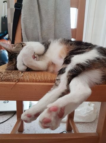 La semaine s'était super bien déroulée jusqu'a hier , ou l'accident s'est produit ... Bubble était sous le canapé lit ... chose que je n'avais absolument pas pensé a vérifier le voyant surtout dans le couloir en train de dormir (moquette) mais non il était sous ce put.... de lit ... comme tout les matins , je plie le lit , mon conjoint était sous la douche a ce moment la, en sortant il me demande ou est le chat , machinalement je lui répond dans le couloir ... sauf qu'il n'y était pas.