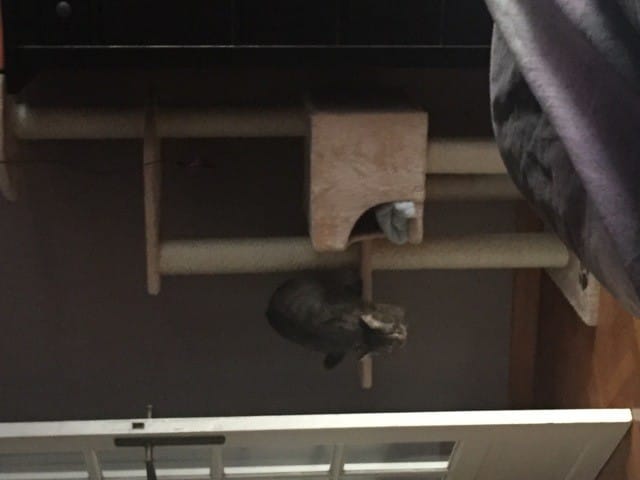 S'il se déplace chez vous en votre présence, ignorez-le, ne le regardez pas, car regard sur il = prédateur qui le regarde, surtout qu'il ne vous fait pas encore confiance car trop stressé par ce changement d'environnement.