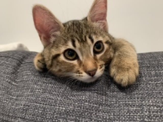 J’ai trouvé un chaton il y a un mois. Il était non sevré ( il avait tout juste 2 semaines quand je l’ai trouvé ). Dans une boîte à chaussures scotchée dans une station essence ( et oui encore des idiots qui ne font pas castrer leurs animaux et qui ensuite s’en débarrassent ).