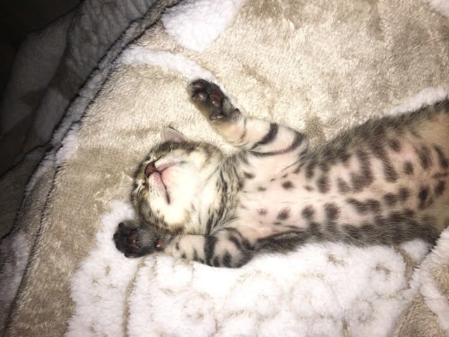 J’ai trouvé un chaton il y a un mois. Il était non sevré ( il avait tout juste 2 semaines quand je l’ai trouvé ). Dans une boîte à chaussures scotchée dans une station essence ( et oui encore des idiots qui ne font pas castrer leurs animaux et qui ensuite s’en débarrassent ).