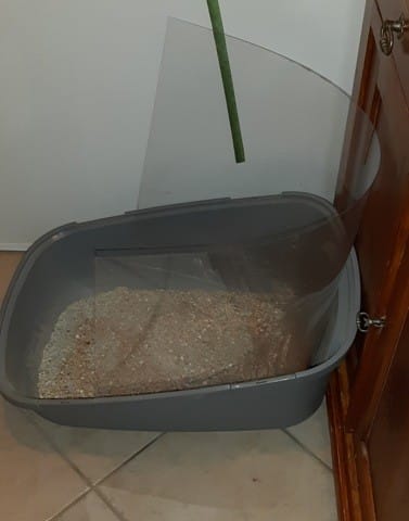et ensuite il se mettait à l'extérieur de la litière et enlevait les crottes de la litière et les mettait à l'extérieur.
