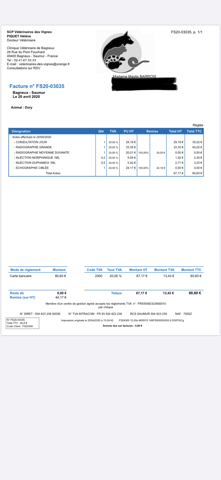 Nous sommes à quasiment 300€ de frais. 1ère consultations opération, échographie, radios, médicaments, crème...