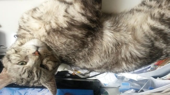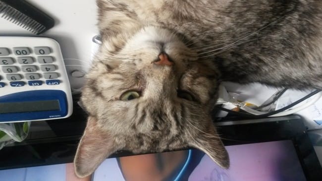 puis je suis rentré chez moi. Elle m'a ensuite demandé de revenir, sans rien dire d'autre. J'ai compris. Le pauvre petit était allongé sur le côté, mais dans une position pas naturelle, pas celle d'un chat qui se repose. rien que cela faisait peine à voire. Il avait les pattes droites, comme un cheval tombé sur le côté. Et il appelait à l'aide. Je me suis allongé à nouveau près de lui, et je lui parlait, l'appelait, tout en sanglotant, ce qui ne m'était pas arrivé depuis des décennies. Je n'ai pas pleuré pour mon père (87 ans) car c'était le cours naturel des choses. Mais un pauvre petit chat de seulement 14 ans. Que c'est triste.