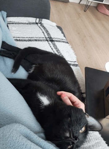 Bonsoir à tous. J'ai adopté Rio, presque 8 mois aujourd'hui, il y a 3 mois en refuge sur Paris. Il a été trouvé avec son frère dans une cage à l'intérieur d'un sac poubelle fermé, tout maigre, et avec la teigne. J'habite seule dans un petit T2 sans accès extérieur. Il est aujourd'hui vacciné et castré, en très bonne santé. Il est mon premier chat.